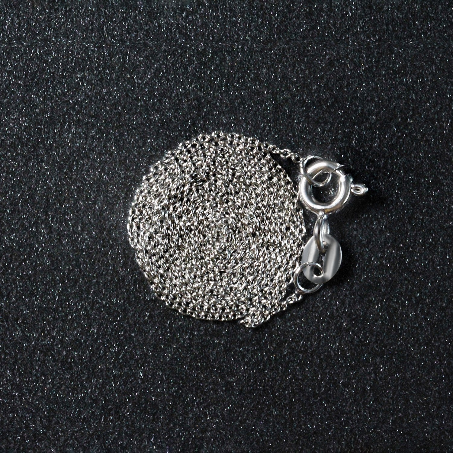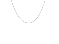 This oval cable link chain comes in 14k white gold and has a width of 0.85 millimeters.